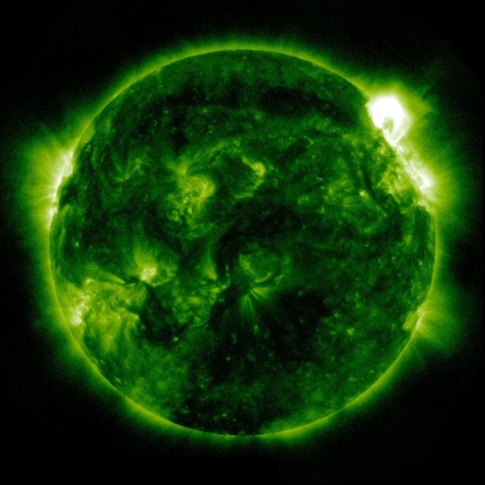 - un moderatamente potente flare solare è esploso in basso a destra con l'invio di luce e radiazioni