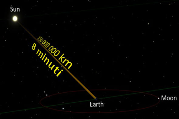 stiamo in realtà guardando la luce che è stata emessa 8 minuti fa: